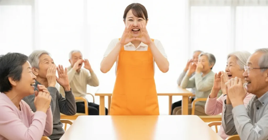美味しくご飯をいただけるように口周りを動かす体操をします。